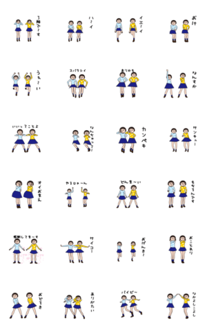 パッと見ダサいけど、昭和味があってかわいいスタンプ(芋ジャージ超特別編)二人のダサかわが、いつもの芋ジャージを着替えてかわいい衣装で面白く踊ってますどんおりじなる より発売