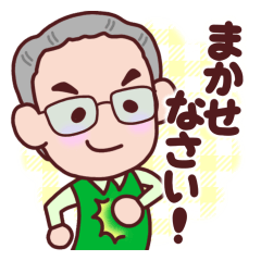 元気なおじいちゃんのスタンプです。毎日使える基本セットです。(おじいさん/じぃじ/ジジ/爺/お父さん/父/家族/男/挨拶/日常/高齢/シニア/デカ文字)あかずきん より発売