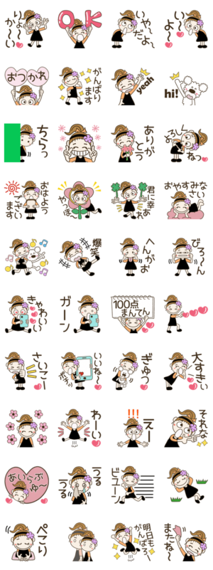 マンガチックな画風の女性がメインのスタンプ。メッセージの汎用性は高く、またボリューム感も十分以上。全体的に使いやすい。