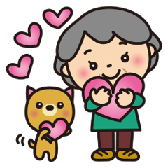 優しくてキュートなばぁばと子犬のスタンプです。 #犬の日Reiko より発売