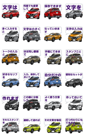 全スタンプ個別にセリフを自由入力して使えるスタンプですのでどんな言葉もスタンプにできます。 好きな車なのに使いたセリフでないという残念な事はもうありません。 現在この商品は一部のスマートフォン版LINE 10.3.0以上のトークルームでのみ使用できます。動作環境の最新情報はヘルプをご確認ください。あさごはん より発売