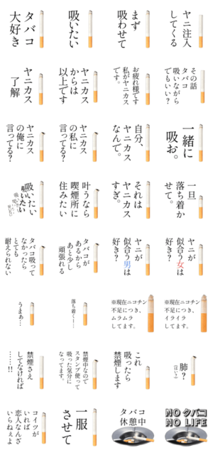 タバコに夢中な奴が使うスタンプ【ネタ/面白い/煙草/たばこ/ヤニカス/酒/飲み会/恋愛/彼氏/彼女/浮気/カップル】Yoroniku より発売