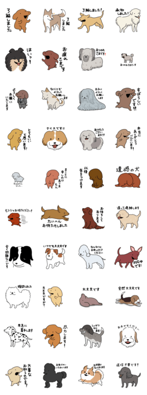 実務的な仕事において頻出する文言を集めた犬のスタンプです。ukkari より発売