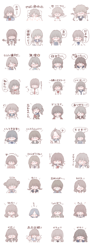 学生さんにおすすめのスタンプです。 セーラー服やブレザーの子をたくさん描きました。なみの より発売