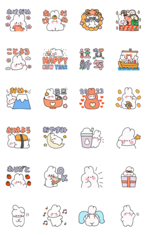 「あけましておめでとう」と言いたいうさぎのうさちのスタンプ。友ちに「あけおめ」って友情深めましょう♪お耳がプニプニだよ♡卯年/正月/年賀/日常/兎が好きすぎてツライ※2023/1/3(火)23:59までに購入すると特典「LINEおみくじ」がもらえます。猫井ナツミ より発売