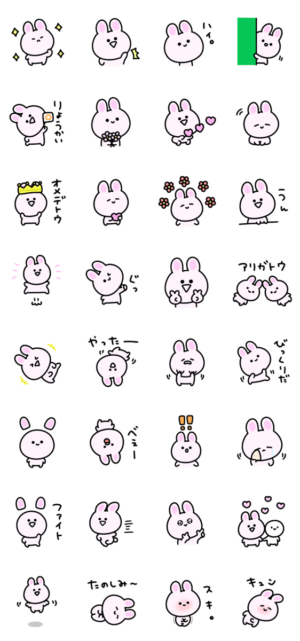 ゆるく生きる♡シュールなミニうさぎのスタンプです。太線です。eribo より発売