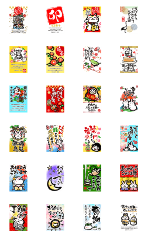 2023年/正月/お正月/年賀/年賀状/筆文字/筆絵/うさぎ/兎年/卯年/令和五年/元旦/新年/年末年始/謹賀新年/とびだす/飛び出す/ねことうさぎ名前スタンプシリーズ/山田まぽん作※2023/1/3(火)23:59までに購入すると特典「LINEおみくじ」がもらえます。山田まぽん/名前スタンプ より発売
