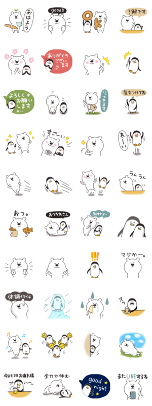 白くまとペンギンの一年中使えるスタンプです。 LINEスタンプの日参加です。m-coffee より発売