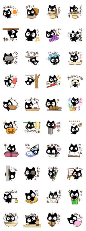 秋っぽい雰囲気の『クロネコすたんぷ』。よく使う言葉や、あいさつ等、ずっと使えるちいさい黒猫スタンプ。可愛いくろねこ好きな方にぜひ。【かたこ】かたこ より発売
