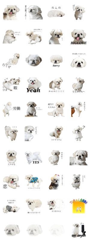リアルわんこのスタンプ。普通に使いやすいものから使い所がまずないようなものまで幅広いものを取り揃えてある。全体的な使いやすさはまずまず。