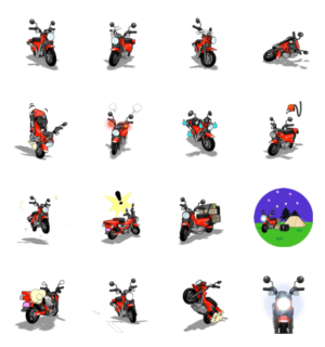 飛び出す!赤いミニバイク スタンプ画像一覧