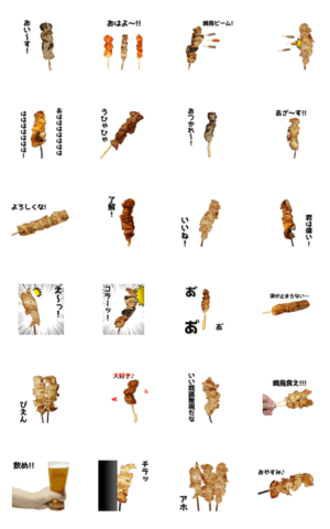焼き鳥がキモく激しくぬるぬる動くスタンプです。香ばしいやきとりをどうぞ。ビールもあります。飯テロ、ヤキトリ、忘年会新年会。実写・写真食べ物動くスタンプシリーズ。竹野チコ より発売