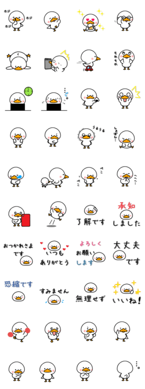 とっても表情豊かでお茶目なゆるいあひるちゃんです。文字が無くても相手に伝わるスタンプです。みんなでずっと使えます。使用頻度が高い文字入りスタンプも入っています。