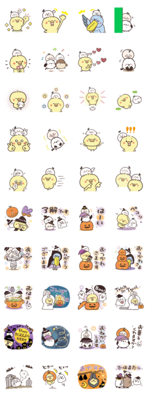 まるいやつらとトリさんの【LINEスタンプの日】特集参加のスタンプです。ハロウィンスタンプも一緒にどうぞ♪シマエナガ/ハシビロコウ/ヒヨコ/ひよこ