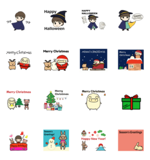 動くハロウィン、クリスマス、年末年始の挨拶スタンプです。クリスマス多めです。mi-fu- より発売