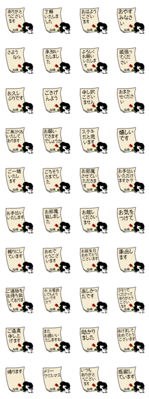 敬語スタンプ 承知いたしました おまかせください おめでとうございます 感謝しています ごきげんよう 帰ります ご無沙汰いたしております ミステリアスなスタンプ