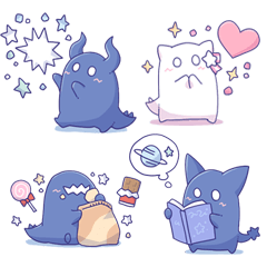 やわらかな雰囲気の、ふしぎせいぶつのスタンプ。使いやすさはまずまず。ボリューム感も悪くない。かわいらしさもなかなか。