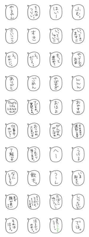シンプルで使いやすい手描き吹き出しスタンプ。画像編集で写真にも挿入できちゃう。【面白い/ネタ/煽り/金欠/酒/ニート/社畜/仕事/飲み会/恋愛/彼氏/彼女/浮気/カップル】