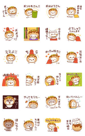 友達や家族、恋人に♪たこ焼きをかぶった可愛いネコさんによるコテコテの関西弁スタンプです!毎日のちょっとしたやり取りなど日常会話にとっても便利です。(白猫)