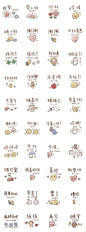 あいさつなど日常で使いやすい中国語を集めたシンプルなスタンプ。日本語訳付き。なからん より発売