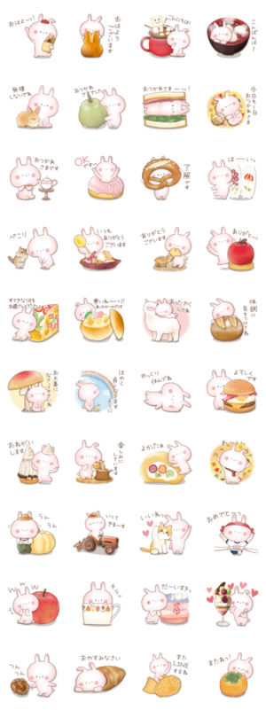 ほんわか可愛い癒し系うさぎ「ぬくうさ」の第25弾は、秋冬に使いやすい日常言葉のセット!寒い季節もぬくぬく乗り切ろう♡(敬語/気遣い/かわいい/女の子/大人)