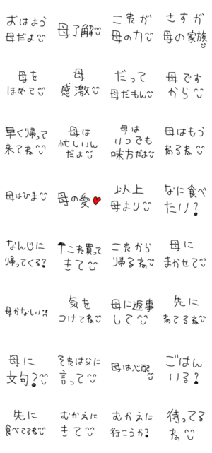 家族LINE、ママ、面白い、ネタ、ギャグ、こども、文字スタンプkokoro zashi より発売