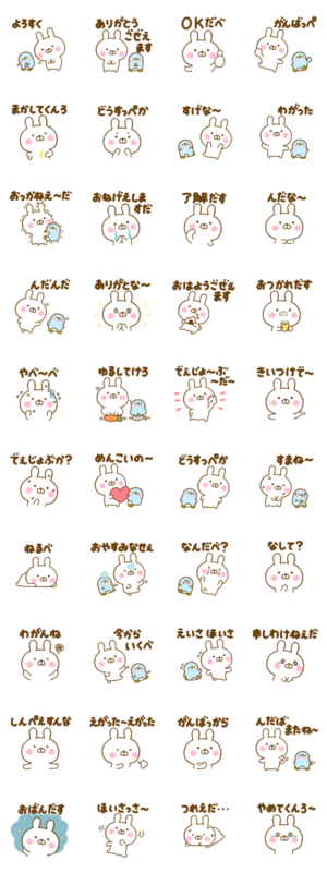 Naoyのゆる~くかわいいずっと使える田舎の言葉を話すうさひなとぺんぺんのスタンプだよ(*‘ω‘ *)Naoy より発売