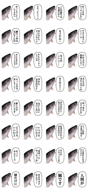 【ネタ/煽り/フキダシ/面白い/愛/返信/便利/使いやすい/ムカつく/不思議/感想/適当/ギャグ/女子/相談/魚/シュール/寿司/食品/インパクト/イラスト/その他】