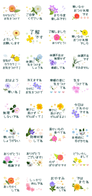 寒い日のやさしい花スタンプ*秋冬まいにち スタンプ画像一覧