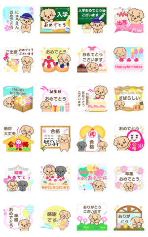 【トイプードル】犬敬語メッセージスタンプ/お祝い/合格/結婚/入学/入園/卒業/卒園/出産/大人女子/おめでとうございます/ありがとうございます/感謝/おしゃれ/mamama-chin 現在この商品は一部のスマートフォン版LINE 10.3.0以上のトークルームでのみ使用できます。動作環境の最新情報はヘルプをご確認ください。mamama-chin より発売