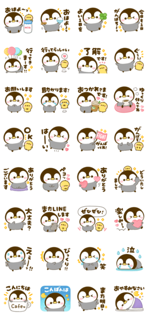 ころころ可愛いペンギンの赤ちゃん、ぺんぺんの毎日使えるスタンプです。基本の言葉やあいさつが揃っているので使いやすい内容になっています♡ぴよたぬき♡ より発売
