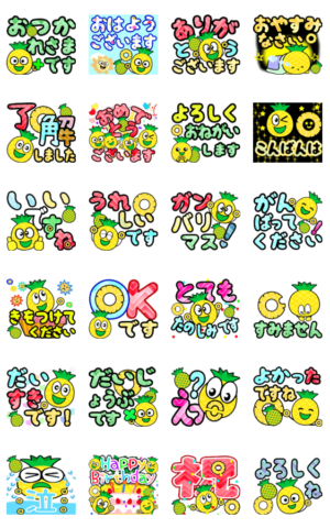 飛び出す敬語!にっこりパイナップル君 スタンプ画像一覧