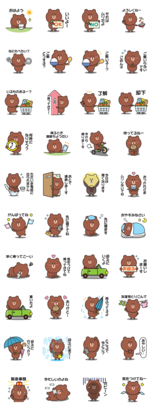 ブラウンの家族の連絡用に使える言葉を集めたとっても使いやすいスタンプの第三弾です♪
