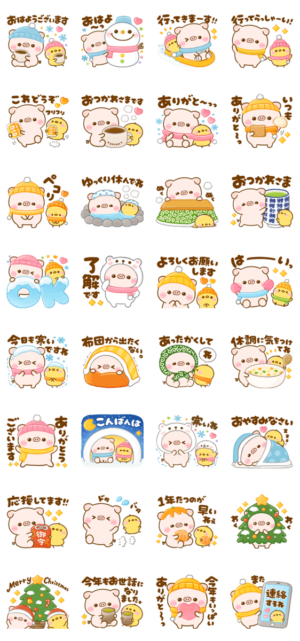豚のぽこちゃんの可愛いスタンプ冬バージョン。寒い冬にほっこりしましょう