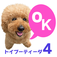 トイプードル・ティーダの4枚目のスタンプです。よく使う言葉を集めました。文字は見やすく大きめです。表情豊かな可愛いスタンプです。英語も少し入れてみました。