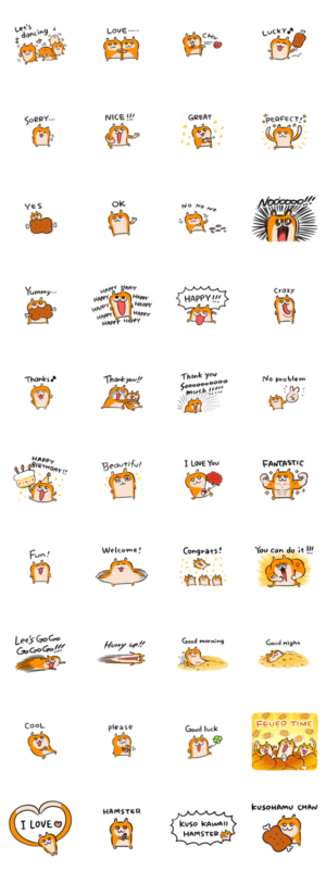 英語とハムスターが題材の作品。英語といっても難しいものはなく、OK、LOVE、NICEなど簡単なものばかりで使いづらいことはない。