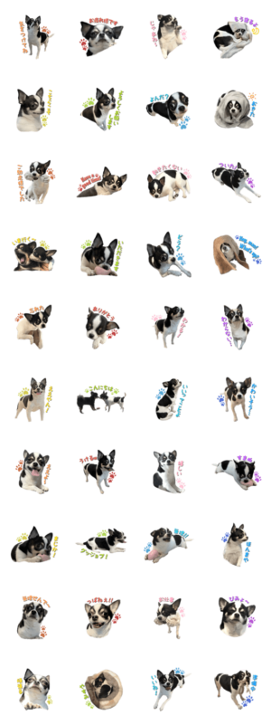 白いスムースコートチワワのスタンプです。 使いやすい/毎日/ホワイト/ブラックタン/ワンコ/犬リムペコ より発売