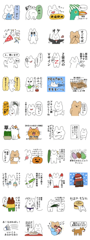 情緒だけでなく絵柄も不安定な動物たちのスタンプ。しかし個性に全振りといった塩梅の作品で、1つ1つが実に印象的。汎用性はともかく、好きな人は好きそう。