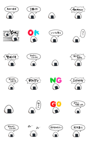 動くおにぎりのスタンプです。おむすびころりんしたりします。握り飯好きな方にどうぞ。シンプルな日常あいさつや敬語もあるので友達家族上司仕事先輩なんでもどうぞ。