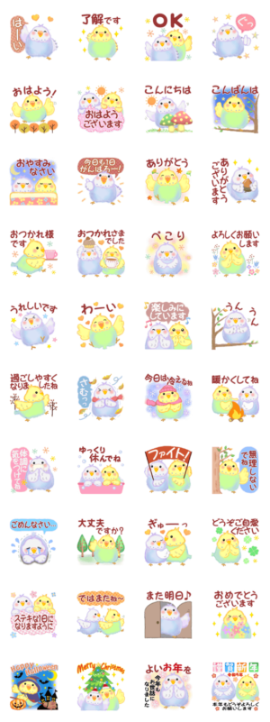 セキセイインコの秋から冬にかけての日常に使いやすいスタンプです。めぐみん より発売