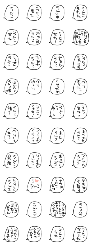 らくがき文字の吹き出し【うんこ】スタンプです☆面白いワードを集めました☆写真画像に貼って遊ぶこともできます☆友達/家族/グループ/かわいい/連絡/シンプル