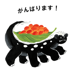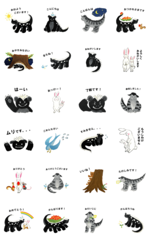 絵本『やさしいかいじゅう』(冨山房インターナショナル)6本足のかいじゅうと森の仲間たちの描き下ろしスタンプです。まじめな場面でも使えるスタンプになってます!