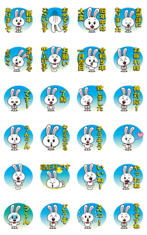 かわいいウサギの2023年、新春年賀挨拶状です。コマをつなげて使って下さい。※2023/1/3(火)23:59までに購入すると特典「LINEおみくじ」がもらえます。金田常幸 より発売