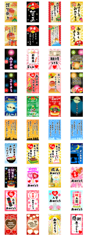 お正月/あけおめ/謹賀新年/年賀状に♪クリスマス/バレンタイン/ホワイトデー/誕生日/ウェディング/結婚/卒業/入学/卒園/入園/成人式/合格等,年間行事のお祝いにおめでとう!※2023/1/3(火)23:59までに購入すると特典「LINEおみくじ」がもらえます。NetworX より発売