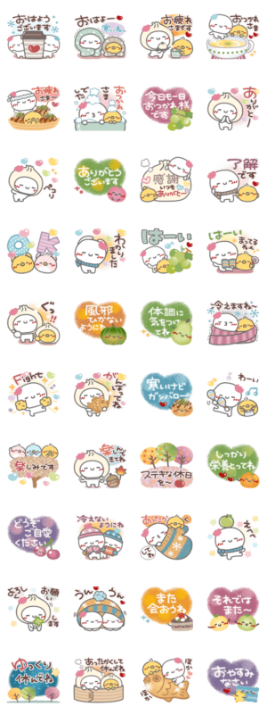 冬の思いやりスタンプです。挨拶/気遣い/ハート/食べ物/でか文字/日常/しらたま/とり