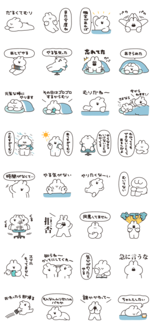 やる気のないうさぎのスタンプです。ナポリ より発売
