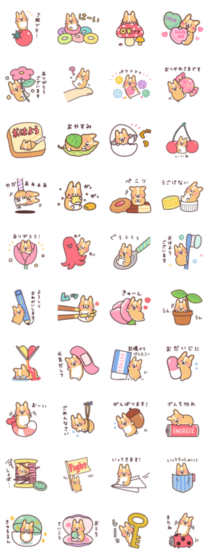 まるまるコーギーが極小サイズになっちゃった!どんぐりを運んだりペットボトルのキャップにハマったり。とっても小さなコーギーのスタンプです。つじなつみ より発売