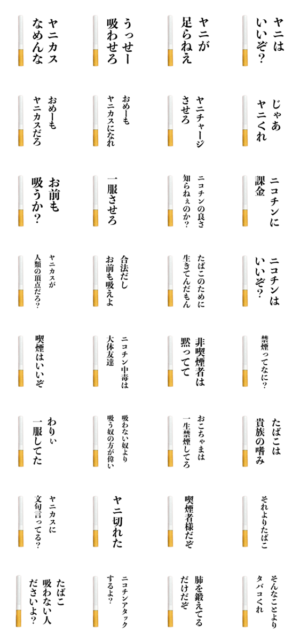 煽り、面白い、たばこスタンプ、文字スタンプ、不良、ヤンキー、ヤクザ、喫煙kokoro zashi より発売
