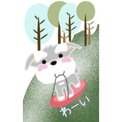ふんわり癒されシュナウザーから冬のイメージのポップアップスタンプです(スノボーやスケートや雪)