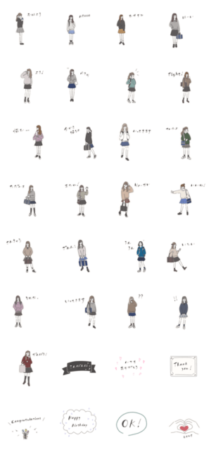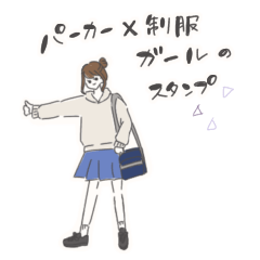 パーカー×制服 ゆる顔な女の子のスタンプです JK 女の子 おしゃれ 制服 女子高生 女子中学生odangogirl より発売